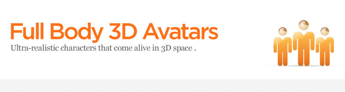 Full Body 3D Characters are the next generation of avatars. Realistic from all angles, these characters can interact with other 3D objects within a scene. They can respond to user commands for an interactive 3D experience.